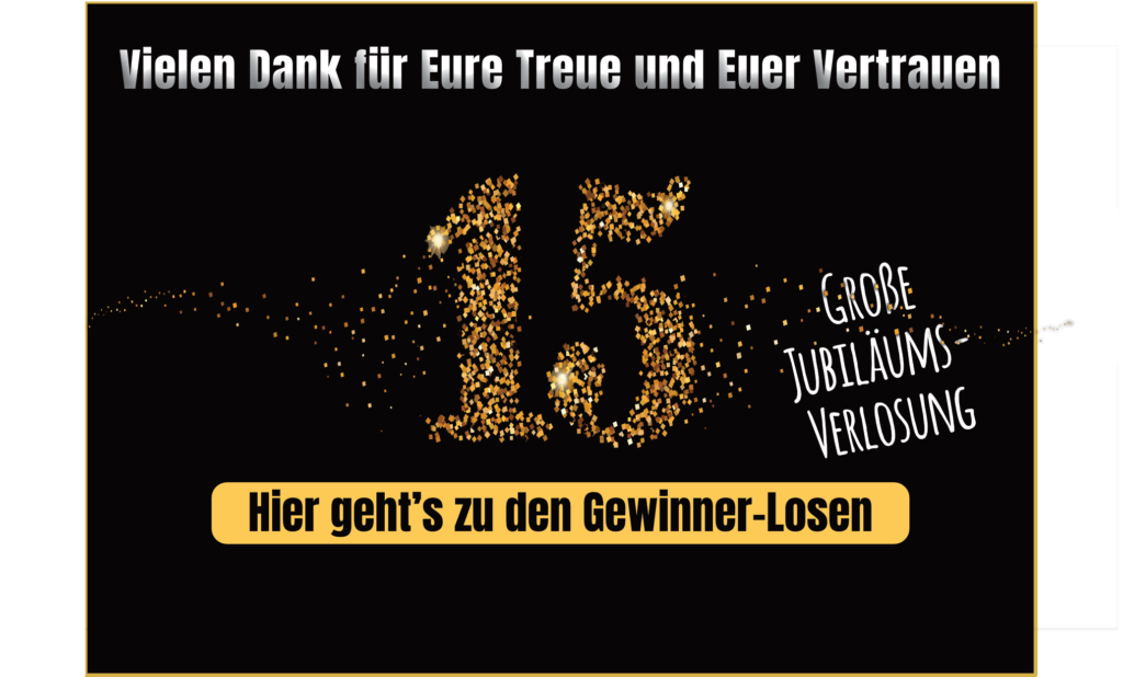 So ihr Lieben jetzt ist es soweit. Die Gewinner stehen Fest. Die Live-Ziehung von unserem 15. Jähriges Jubiläums-Gewinnspiel war gestern (04.10.2022) auf Instagram. Wir wollen uns nochmals für die rege Teilnahme, Eure Treue und Euer Vertrauen. Ferner möchten wir uns auch bei unseren Mitarbeitern und Geschäftspartnern bedanken.