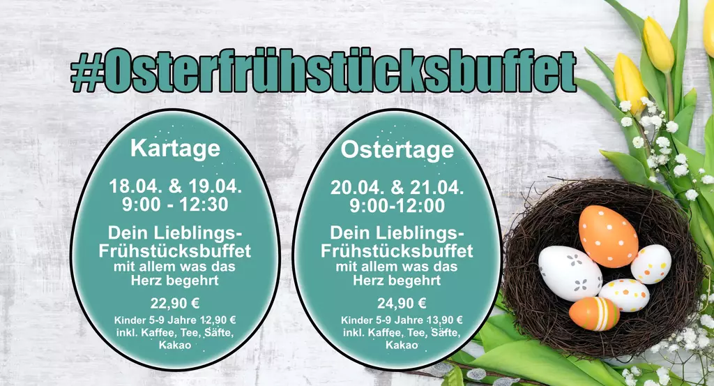 An Ostersonntag und an Ostermontag haben wir auch eine Sonder-Oster-Karte, da ist für jeden Geschmack etwas dabei..